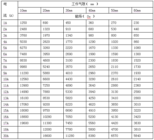 2.4、最大磁场:工作气隙10mm时,H>2T